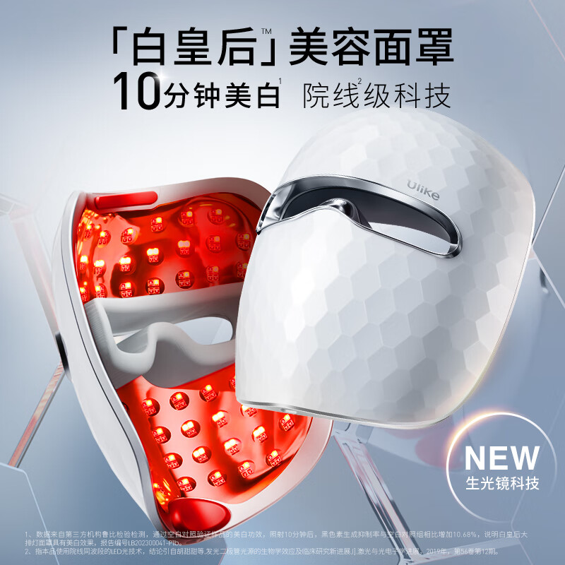 此款UlikeUI06+UM10还不错的,面罩灯看起来挺精致的,照了20多天了才来评价的,个人觉得效果还是有的,比较能看出来的,是痘印或者雀斑会有点变淡的感觉,长期使用的话肯定就会明显看出来一些了,有痘期间照了感觉会好的快些,就是必须做好补水,不然皮肤会比较干,就会容易出油!