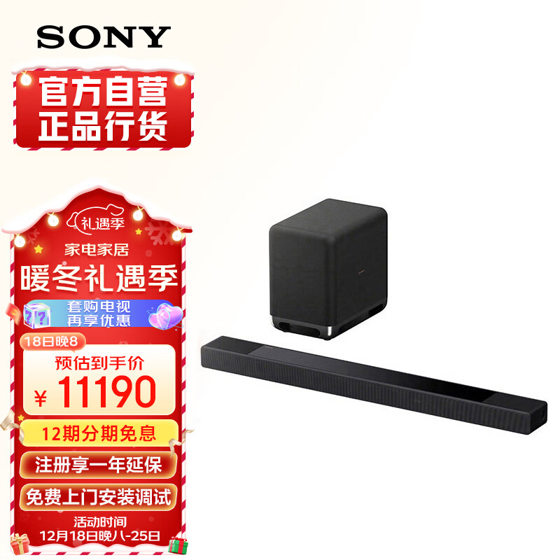 索尼(SONY)HT-A7000+SW5 进阶低音套装 7.1.2 全景声 4K120Hz 家庭影院 壁挂 回音壁 电视/无线音响价格:11190.00元!