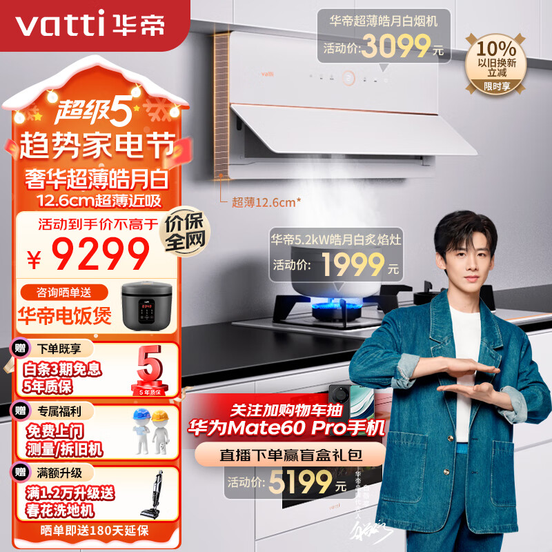 华帝(VATTI)抽油烟机艺术家X10侧吸式白色吸油烟机燃气灶具嵌入式套装超薄近吸i11226+91B+i23031(天然气)价格:9299.00元!