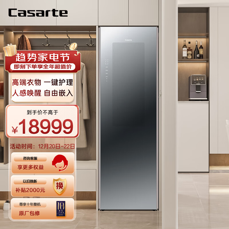 卡萨帝(Casarte)衣物护理机 双循环烘干 快速祛味 除菌净螨 人感唤醒 自由嵌入护理柜 智能物联 CC L02TU1价格:18999.00元!