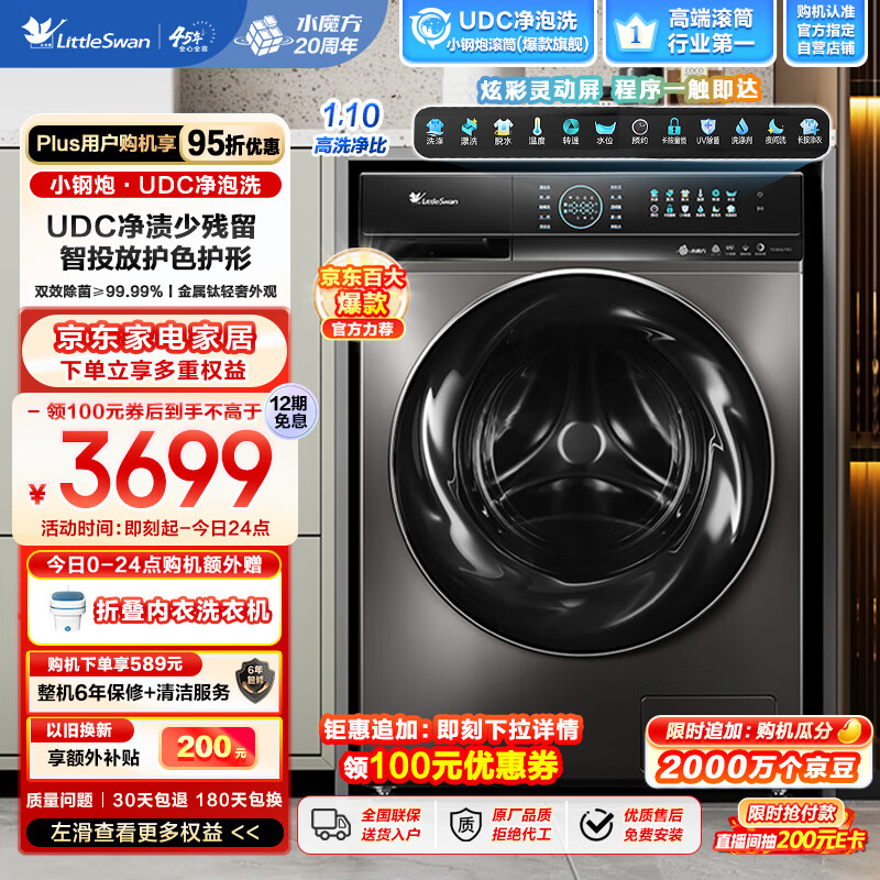 小天鹅(LittleSwan)滚筒洗衣机全自动 水魔方【小钢炮TG100UTEC】 UDC净渍 1.1洗净比 彩屏自投 超薄10公斤 809单洗价格:3799.00元!