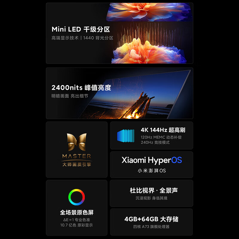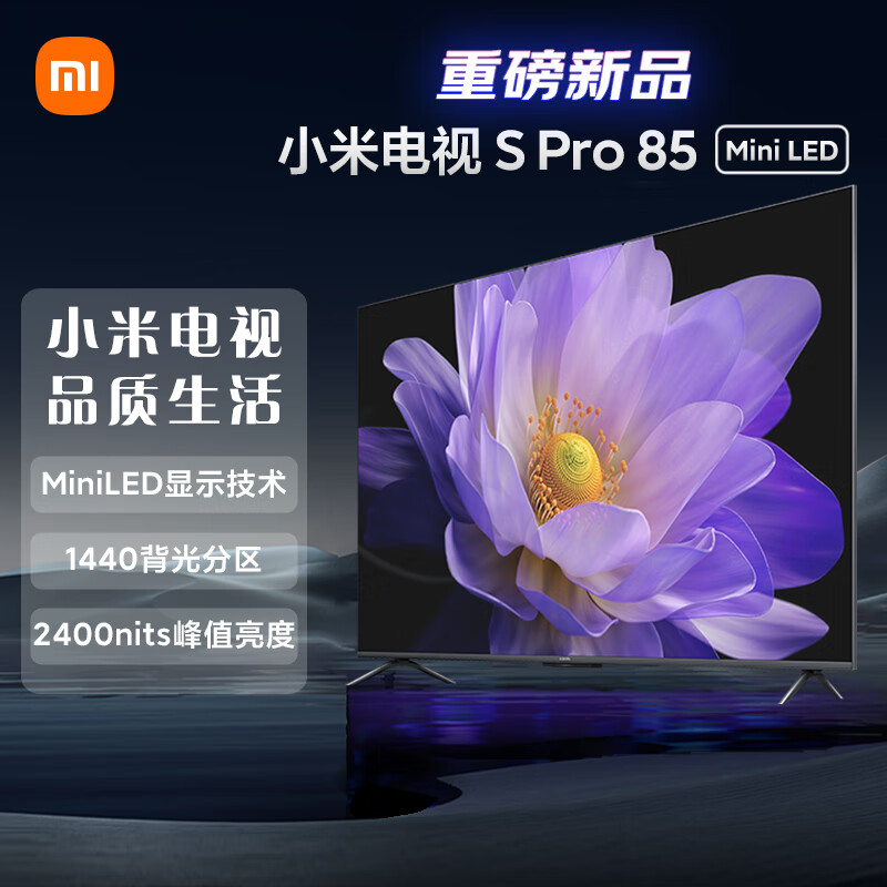 小米电视 S Pro 85英寸 Mini LED 2400nits 4K 144Hz 1440分区 【免费上门安装】 液晶电视机L85MA-SM价格:8999.00元!
