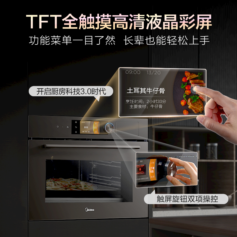 美的(Midea)嵌入式微蒸烤炸炖5合1蒸烤箱一体机 55L 彩屏操控蒸箱烤箱R5 京东小家 APP掌控搪瓷内胆BG5050W价格:5499.00元!