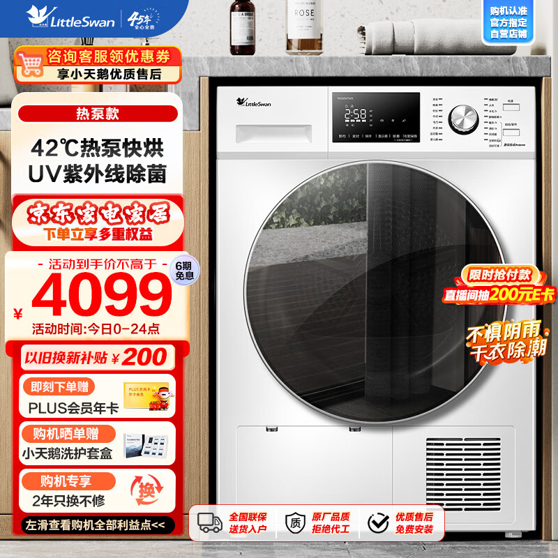 小天鹅(LittleSwan)烘干机 家用干衣机 热泵式紫外线除菌 除螨除潮 衣干即停 快烘20分钟 10公斤 京东小家 TH100VTH35价格:4099.00元!