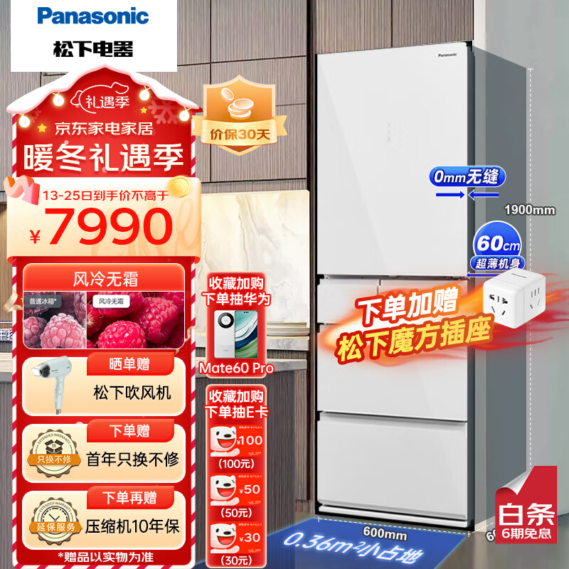 松下(Panasonic)387升嵌入式多门冰箱超薄60cm 黑科技纳诺怡 智能WIFI 自动制冰电冰箱优选NR-EE40TXB-W 白色价格:7990.00元!