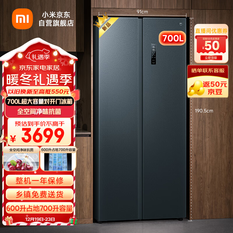 米家小米700L双开门大容量家用冰箱对开门风冷无霜一级能效【双变频净味除菌】以旧换新BCD-700WMSA价格:3699.00元!