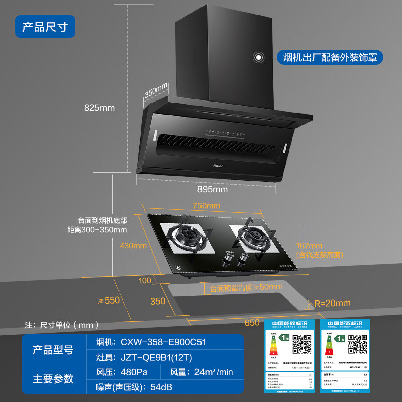 烟机安装尺寸:900±50mm