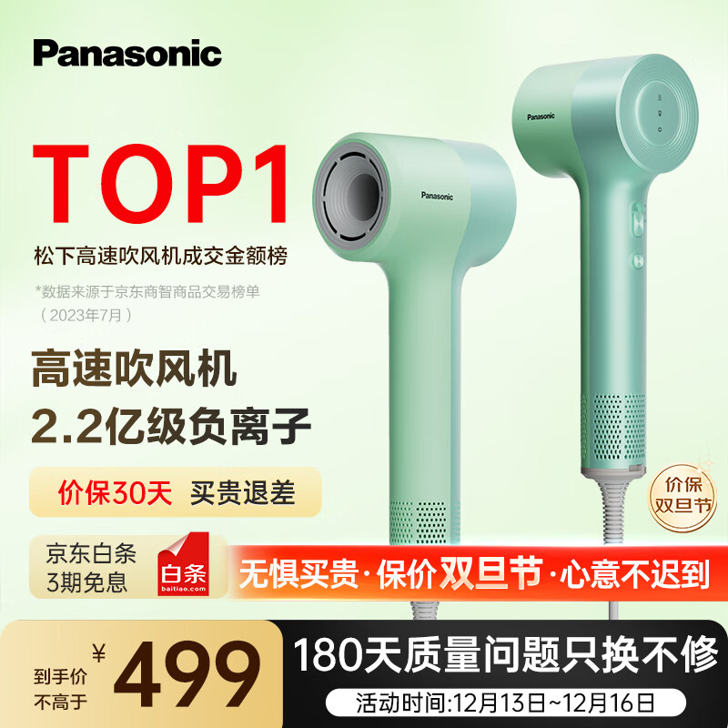 松下(Panasonic)缤纷筒高速吹风机负离子 低噪音大风力吹头发负离子电吹风速干护发家用大功率吹风筒NE7H莫奈绿价格:499.00元!