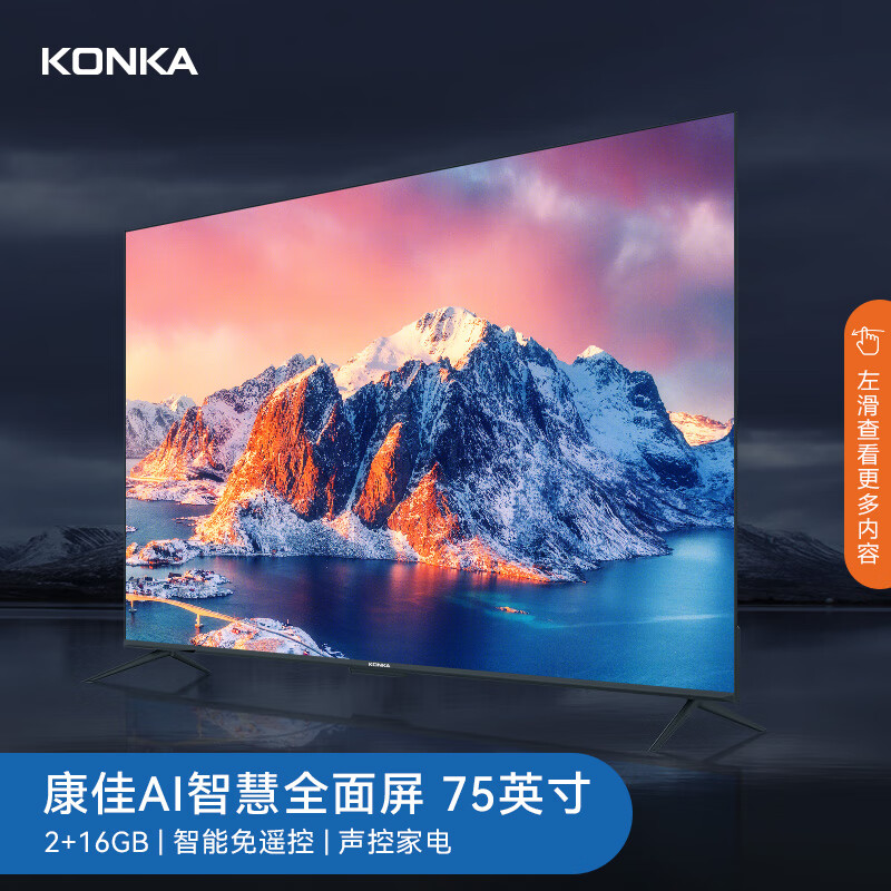 康佳电视 75X3 75英寸 4K超高清智慧屏 屏金属机身 2+16GB 远场语音 人工智能教育液晶平板电视机价格:4599.00元!