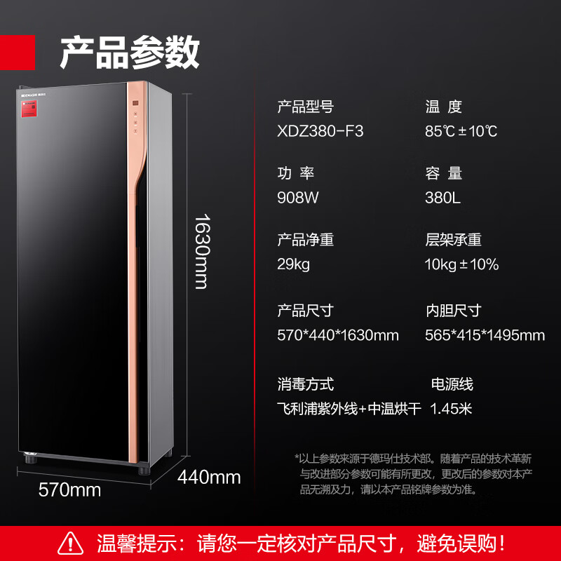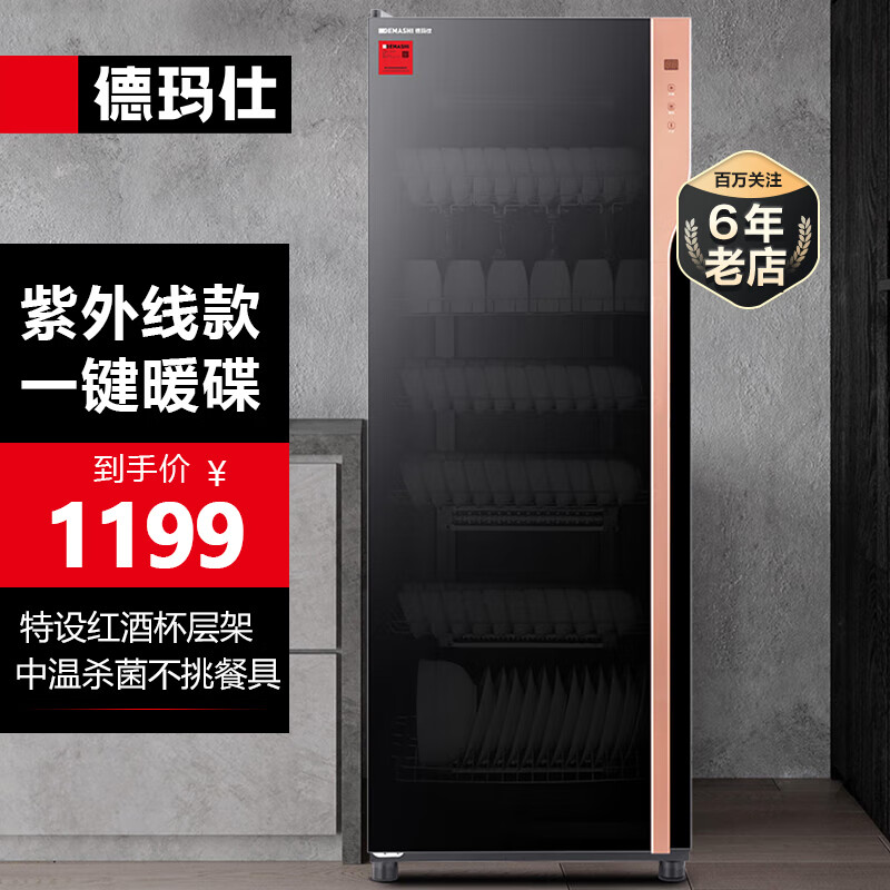 德玛仕(DEMASHI)消毒柜 商用 消毒柜家用立式 消毒碗柜 380L大容量一紫外线XDZ380-F3价格:1199.00元!
