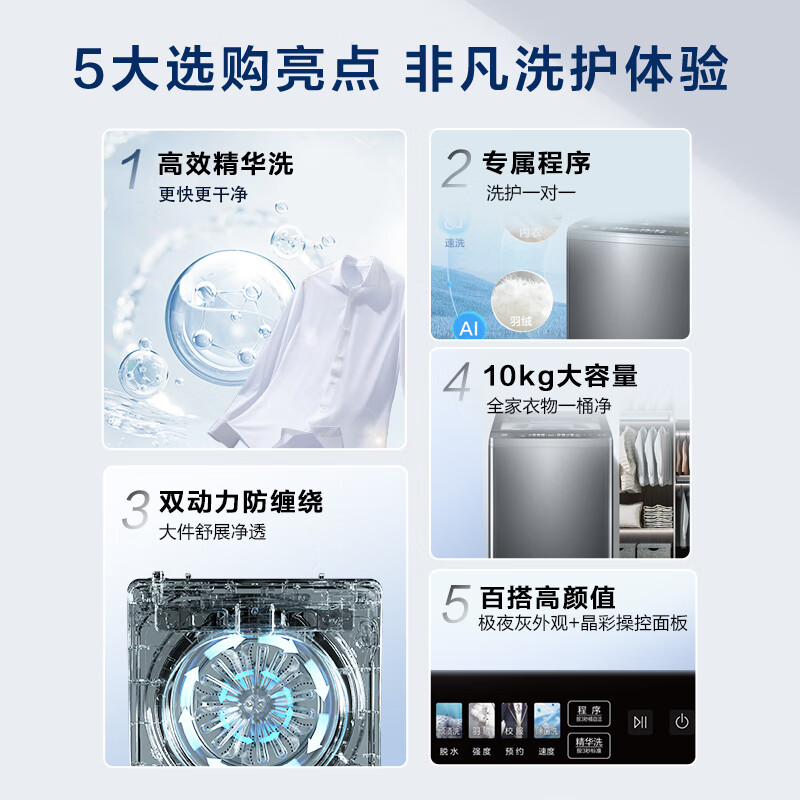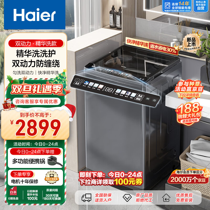 海尔(Haier)波轮洗衣机全自动 高效精华洗 10公斤 双动力防缠绕 直驱变频 羽绒洗 以旧换新ES100B37Mate6价格:2999.00元!