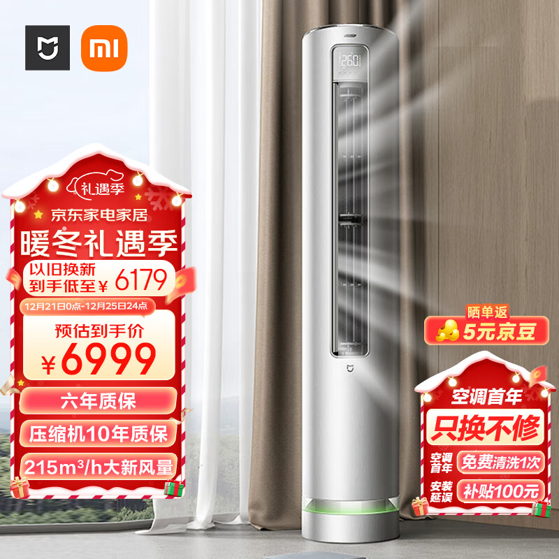 小米3匹 新风空调 新一级能效 变频冷暖 智能互联 客厅圆柱空调立式柜机 米家 KFR-72LW/F2A1 以旧换新价格:6799.00元!