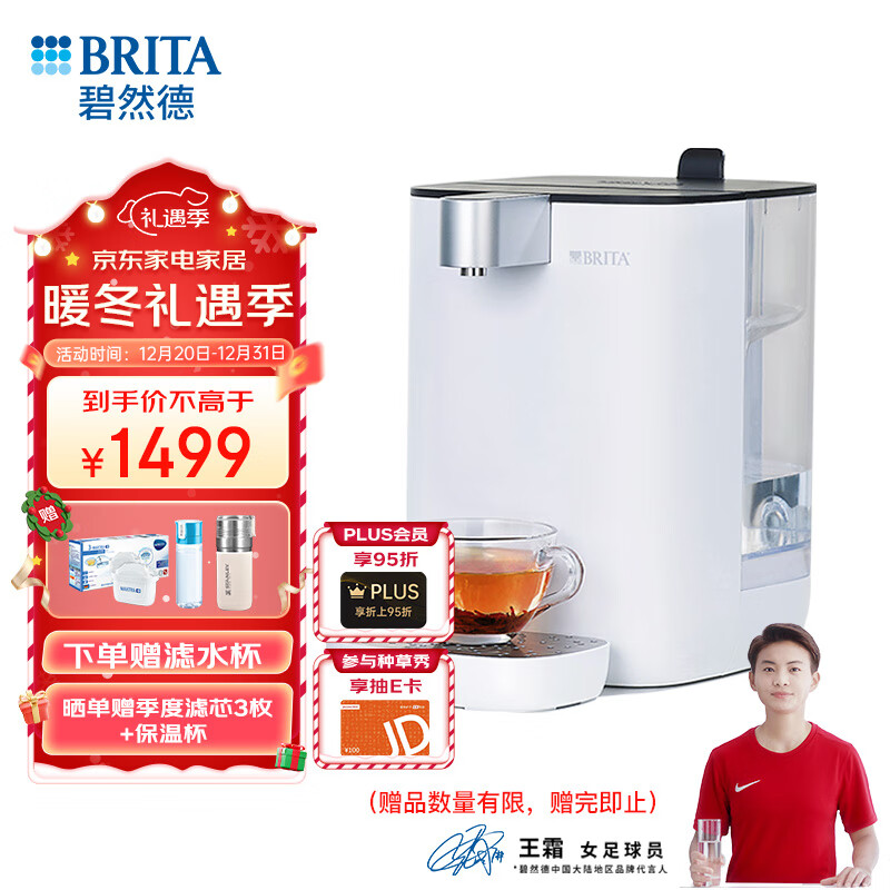 碧然德(BRITA) 台面净饮机即热直饮调温免安装台式净水器 白色 智能即热饮水机价格:1499.00元!