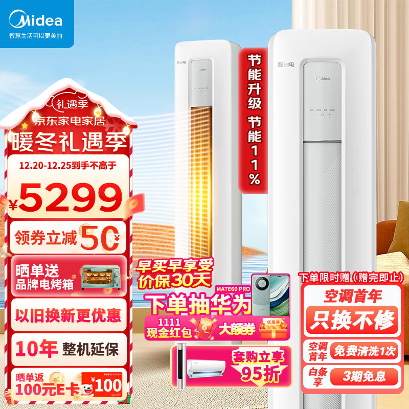 美的(Midea)空调柜机3匹 新能效变频冷暖两用 客厅圆立式空调WiFi智控 智能家电 以旧换新 酷省电72LW/N8KS1-3价格:5299.00元!