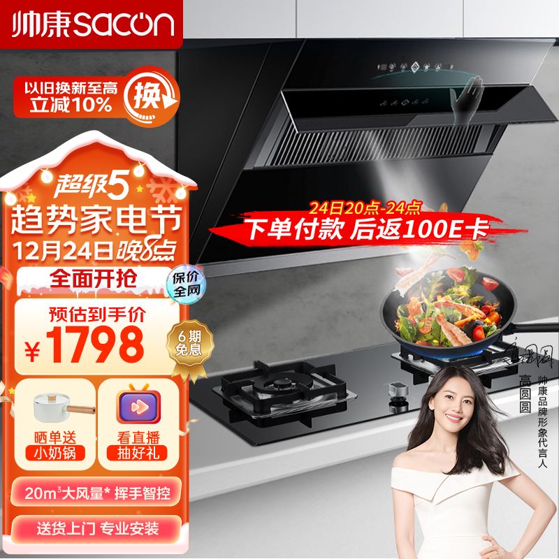 帅康(Sacon)抽油烟机 烟灶套装家用20风量侧吸式燃气灶油烟机灶具套装挥手智控S8807S+61B液化气价格:1798.00元!