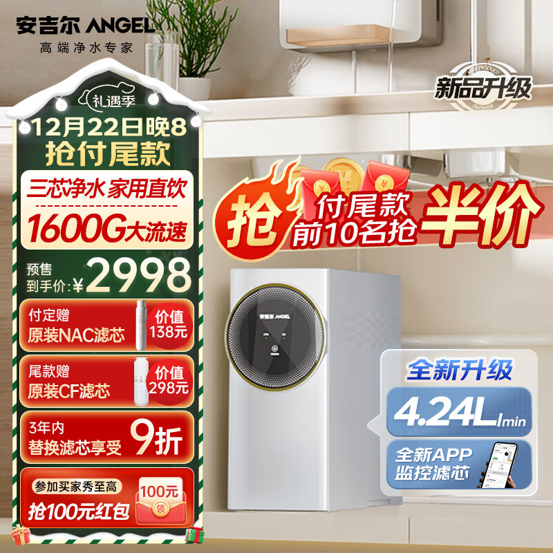 3、相信安吉尔老品牌,大流量用着也方便。给父母买的,原来家里用的是个杂牌的,比较便宜,水质没有保证。家里厨房在装修,买了还没安装,能够预约安装还是比较方便的。双十一价格也给力。