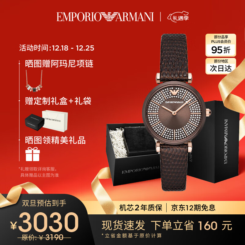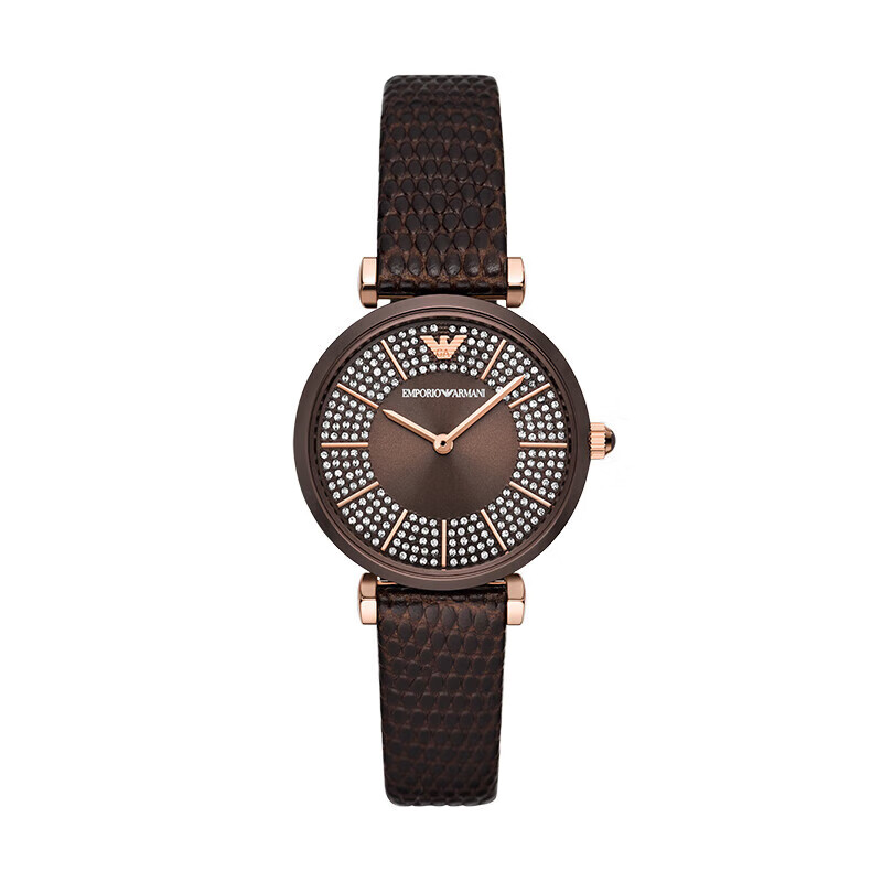 安普里奥·阿玛尼(Emporio Armani)手表女 满天星系列棕色镶钻表盘蜥蜴纹皮带石英女士腕表 AR11565价格:3130.00元!