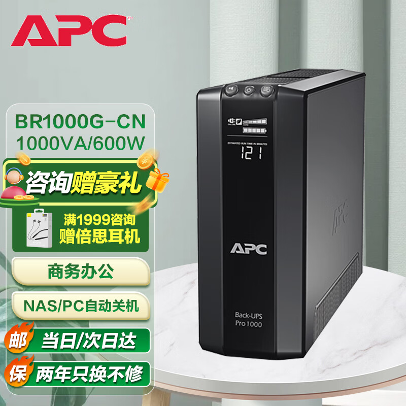 APC BR1000G-CN UPS不间断电源 600W/1000VA 液晶显示USB通讯NAS电脑网络设备商务办公停电应急备用电源价格:1479.00元!