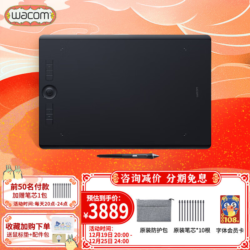 Wacom 和冠 影拓Pro 数位板 手绘板 电脑网课手写板 绘画板 写字板 绘图板 PTH-860/K0 触控标准版(大号)价格:3889.00元!