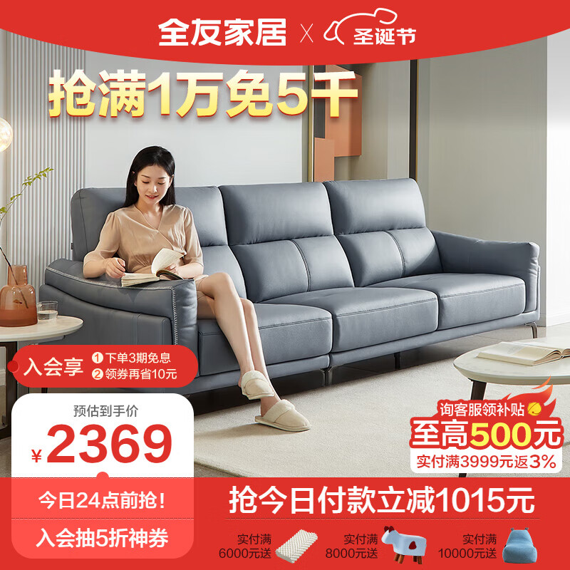 3、全友沙发真的是大牌子,让人放心,做工什么的都很细致,网上比实体店价格实惠的多,想买真皮,有嫌实体店贵的友友真的可以下手,安装送货的师傅态度也非常好
