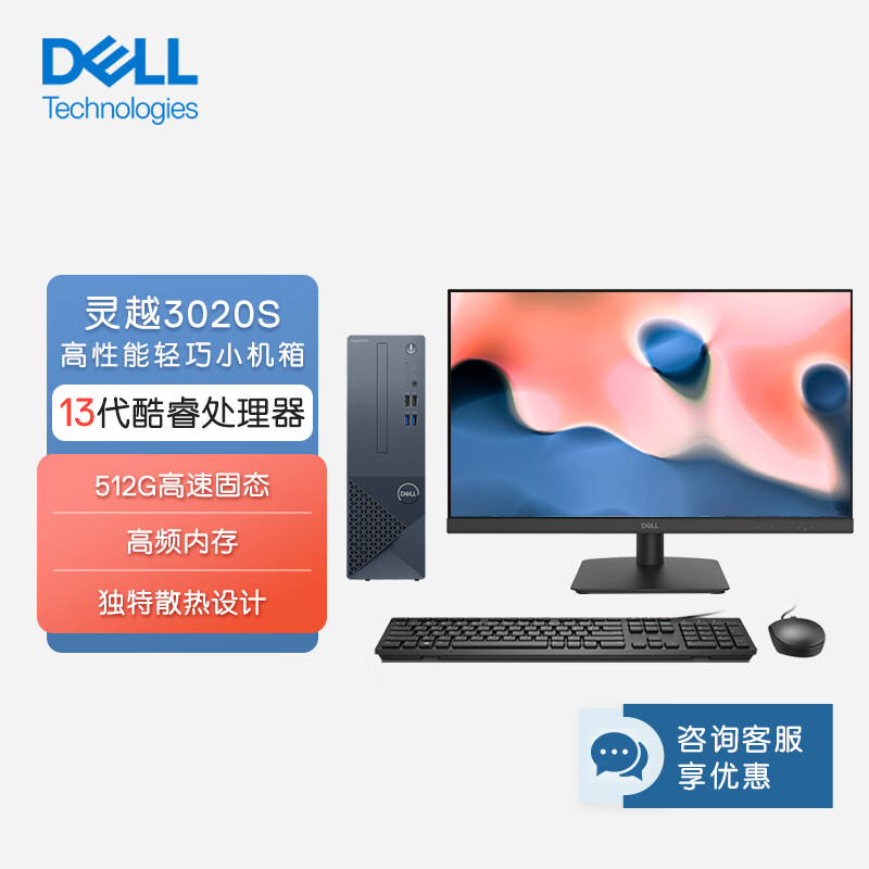 戴尔(Dell)灵越3020S 新款 台式电脑主机 高性能整机 台式机 商用办公电脑 教育学习 图形设计 (13代i5-13400 8G 512GSSD三年上门)23.8英寸大屏显示器价格:3699.00元!