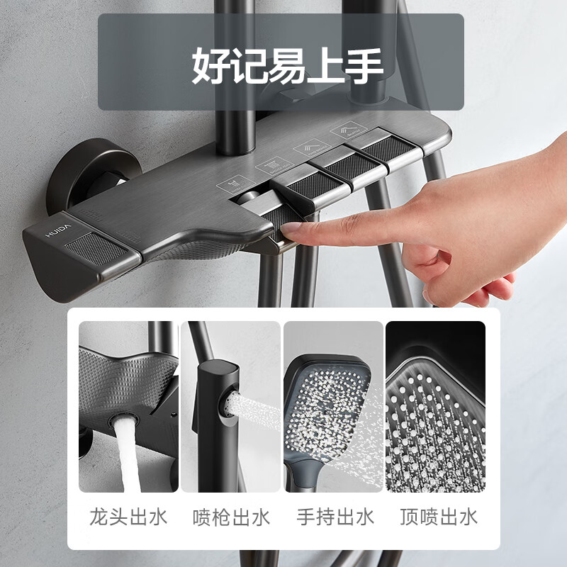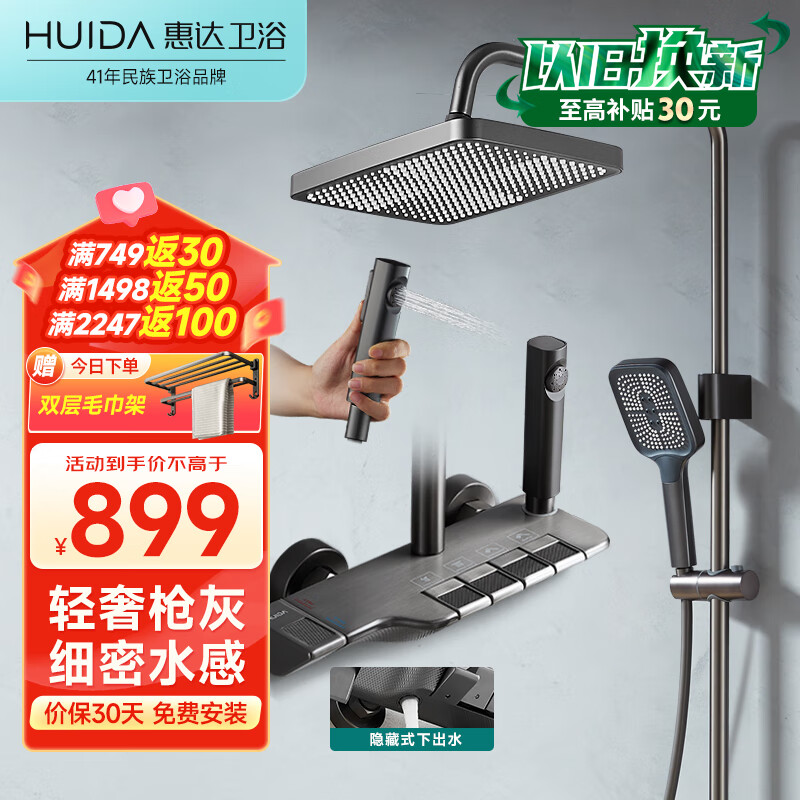惠达(HUIDA)淋浴花洒全套家用卫生间手持沐浴顶喷头增压下出水套装89Z价格:1299.00元!
