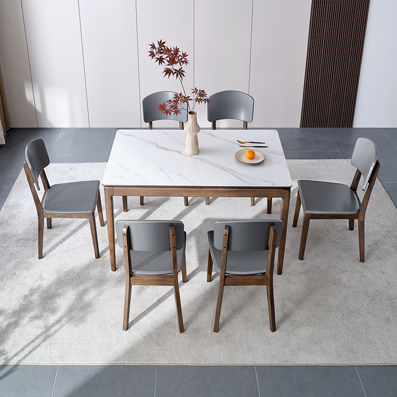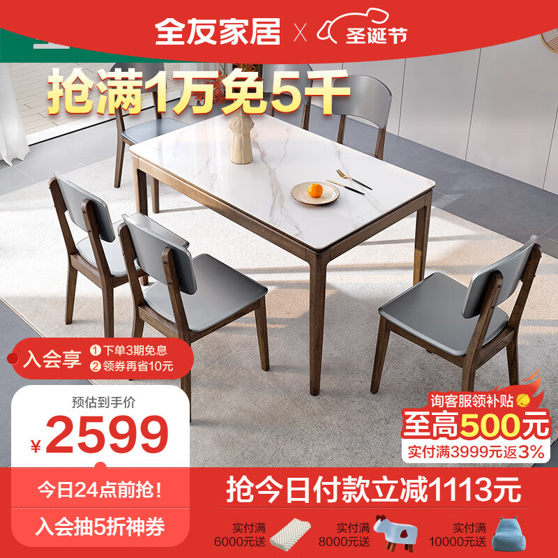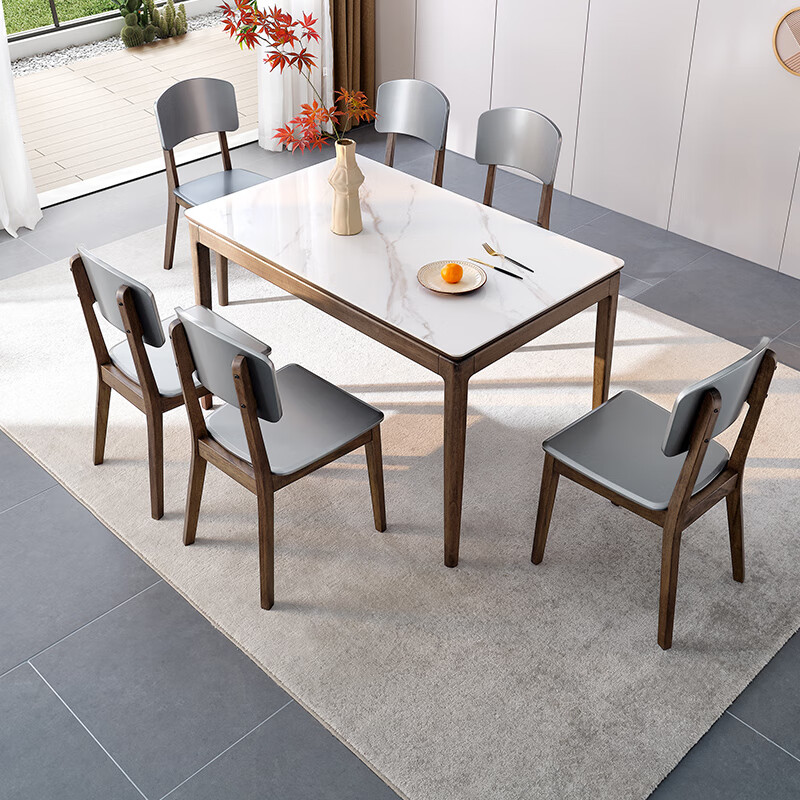 全友家居 餐桌北欧风岩板餐桌实木框架简约稳固结构餐厅长条桌吃饭桌子127902 餐桌(岩板)+127902餐椅*6价格:3712.00元!