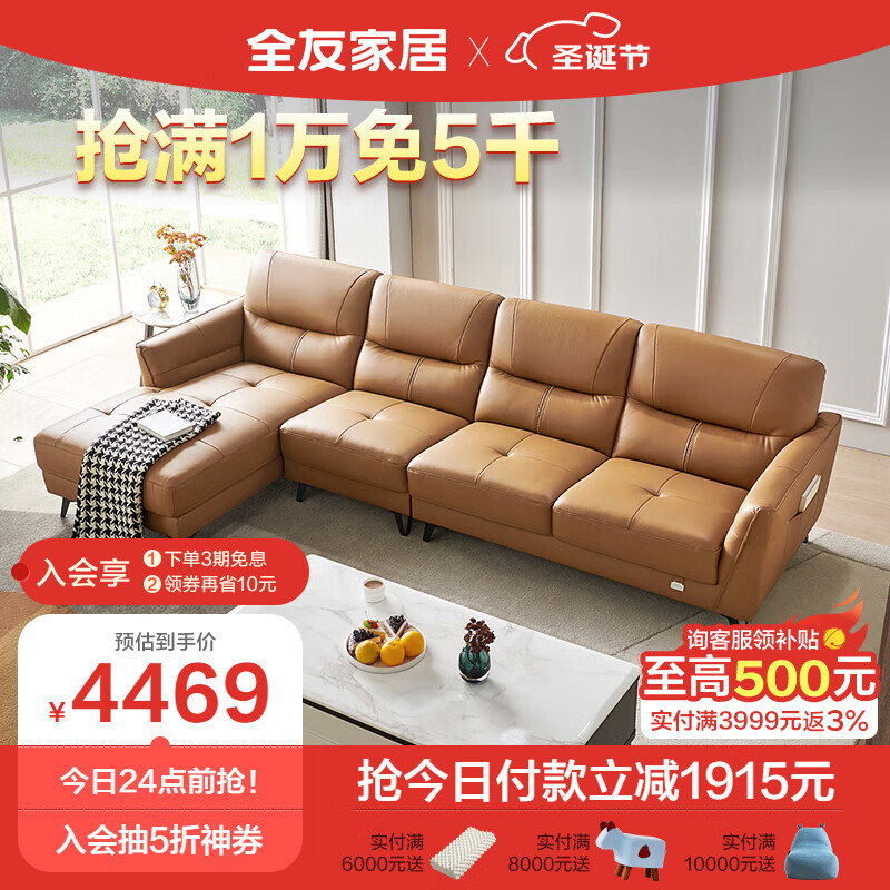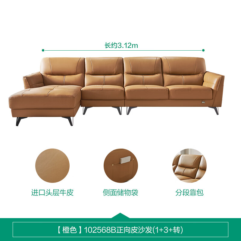 全友家居 意式极简头层牛皮沙发 实木内框架 客厅家具沙发102568B价格:6384.00元!