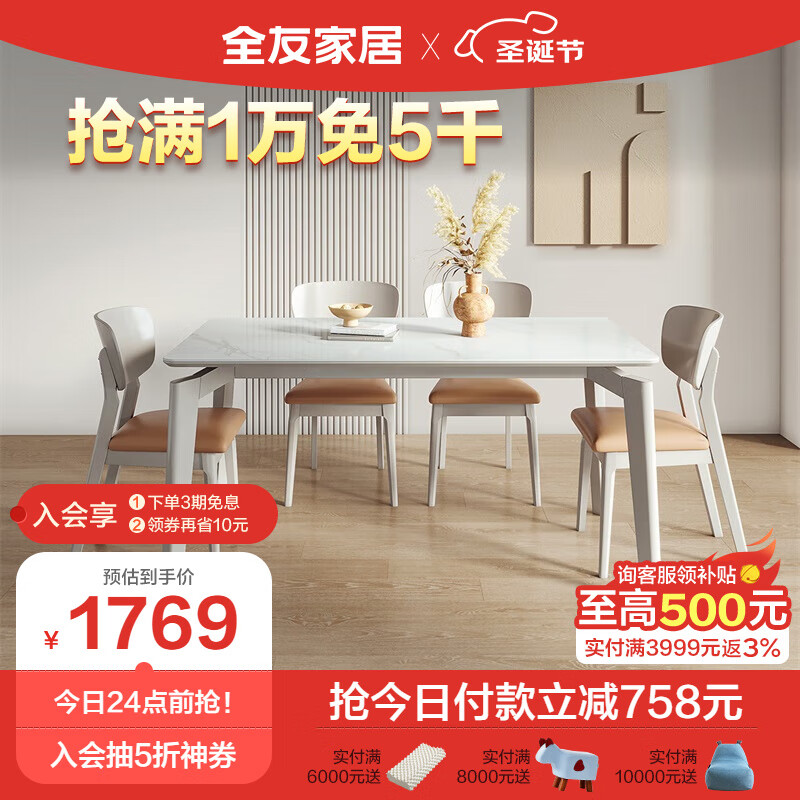 全友家居 餐桌现代简约岩板餐桌椅组合亮光台面餐厅长方形桌子DW1120价格:2527.00元!