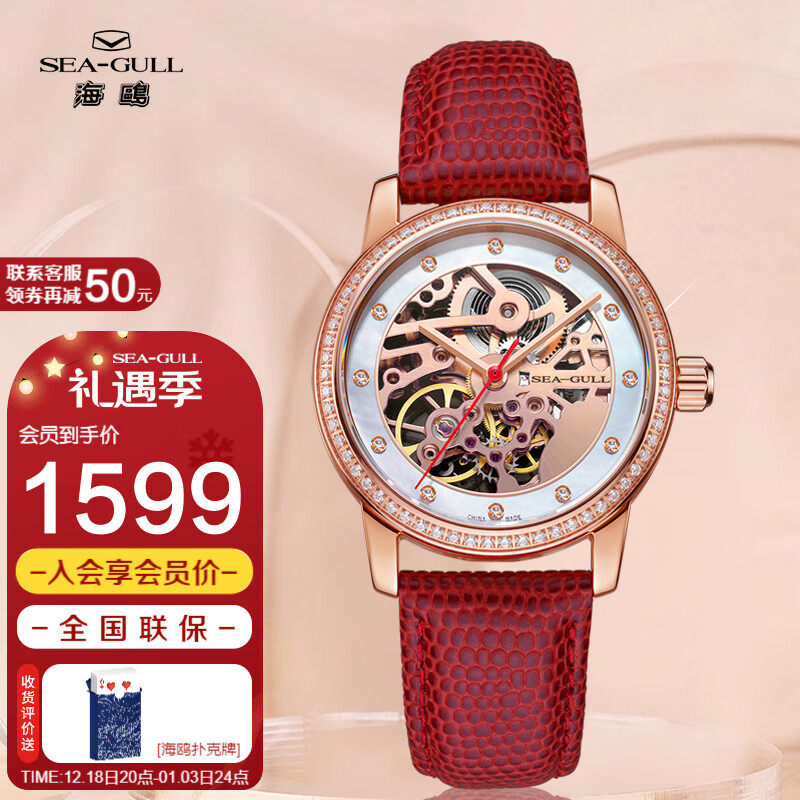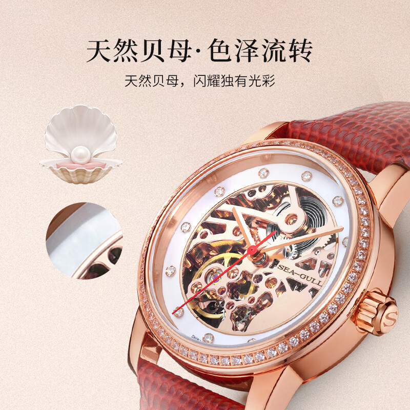 海鸥(SEAGULL)手表女士自动机械表 女表礼物荆棘玫瑰镂空腕表 317.15.6120KL价格:2039.00元!