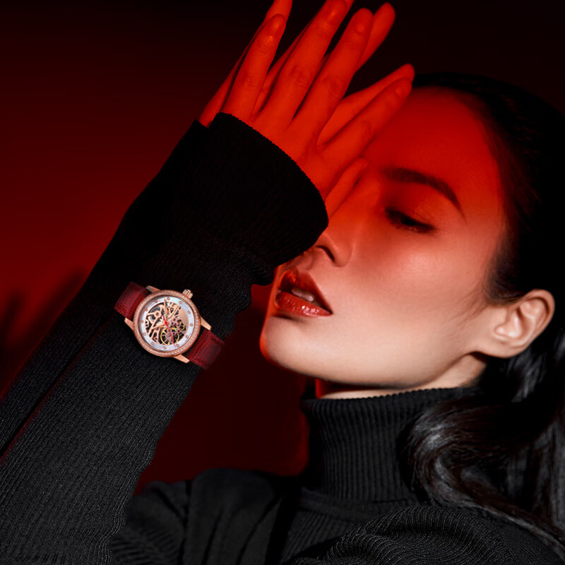 3、外观外形:包装盒很漂亮,轻轻抽拉外包装盒,营造一种“遇见你怦然心动”的小浪漫。表带材质:红色表带,戴在手上还蛮好看的赠礼场景:玫瑰花中间心形包装盒里,放置着这款表,看着就让人心情愉悦精准程度:戴了一个星期,就刚开始上弦,后面每天都佩戴,时间还比较准