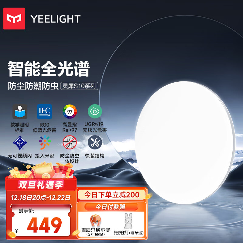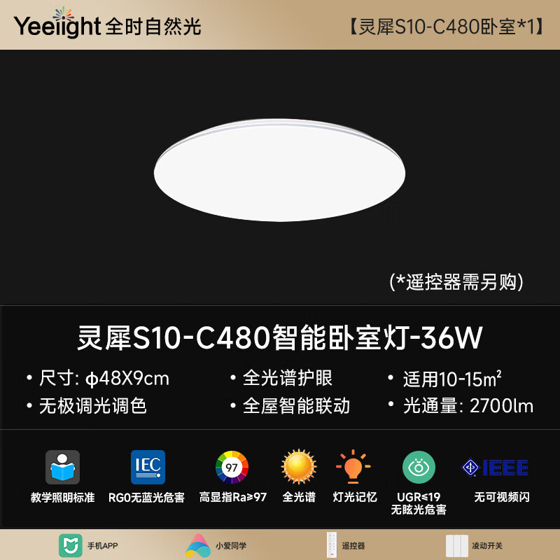Yeelight易来led全光谱护眼吸顶灯客厅超薄智能低蓝光现代简约卧室灯C480价格:649.00元!