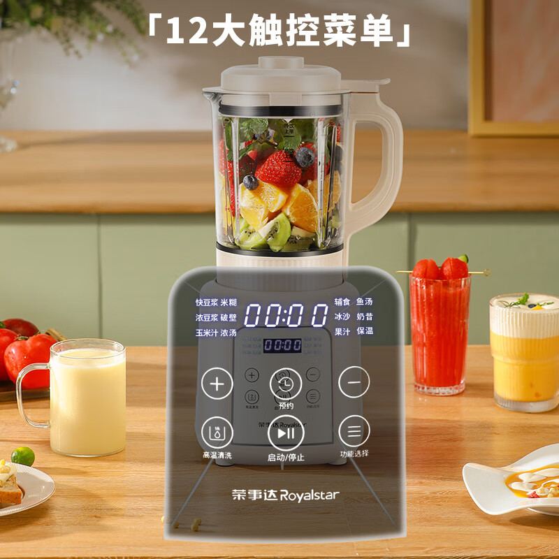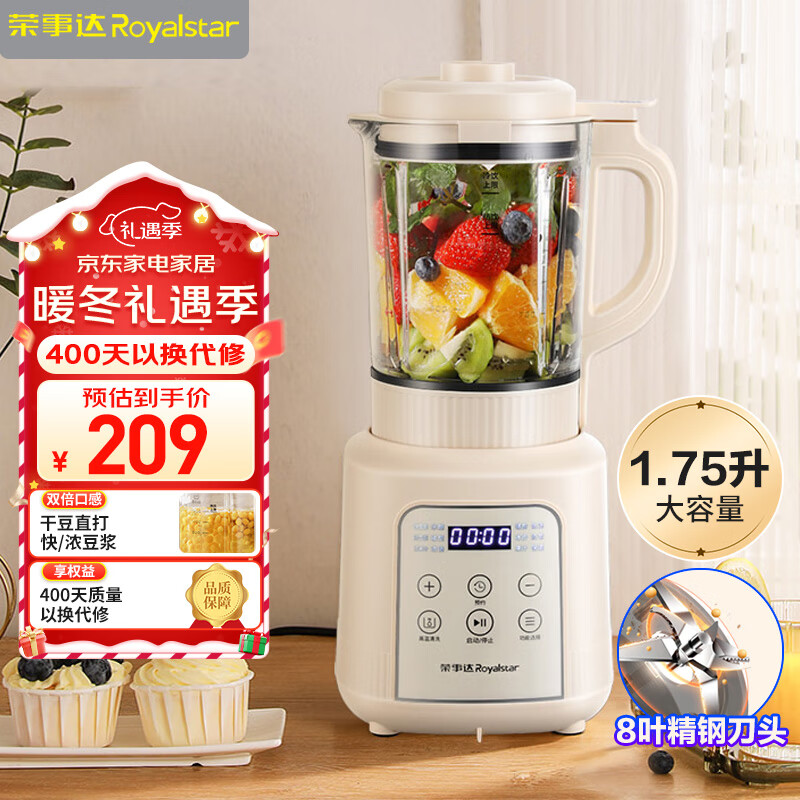 荣事达(Royalstar)破壁机家用免滤豆浆机全自动1.75L大容量低音降噪多功能榨汁料理机 RZ-618A价格:209.00元!