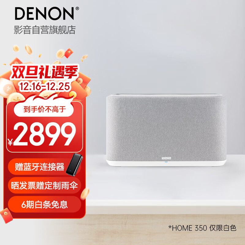 天龙(DENON) HOME350无线蓝牙智能音响HiFi立体声高解析影音系统WiFi多房间音乐组合音箱家用重低音 白色价格:2899.00元!