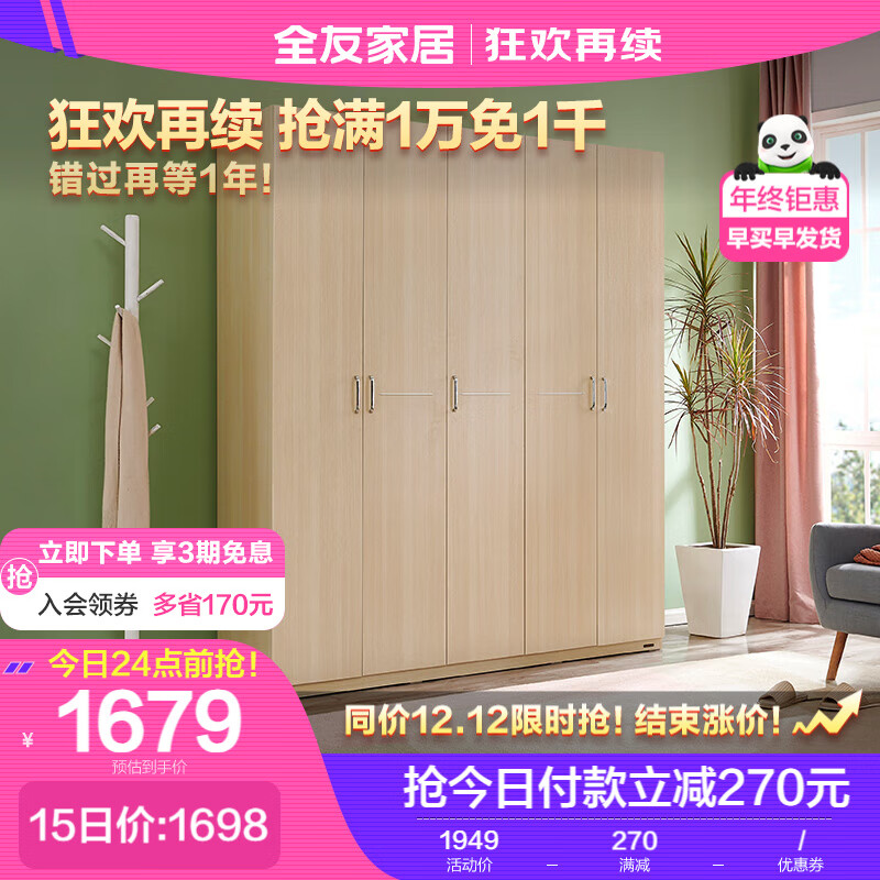 全友家居 衣柜现代简约平开门衣柜卧室家具五门大衣柜106302 五门衣柜价格:1949.00元!