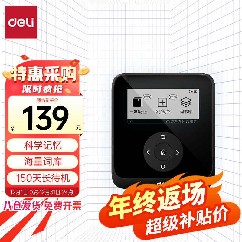 得力(deli)电子单词卡ICARD03 英语单词卡背单词神器 墨水屏电子词典高考学习英语四六级考研神器 黑色价格:159.00元!