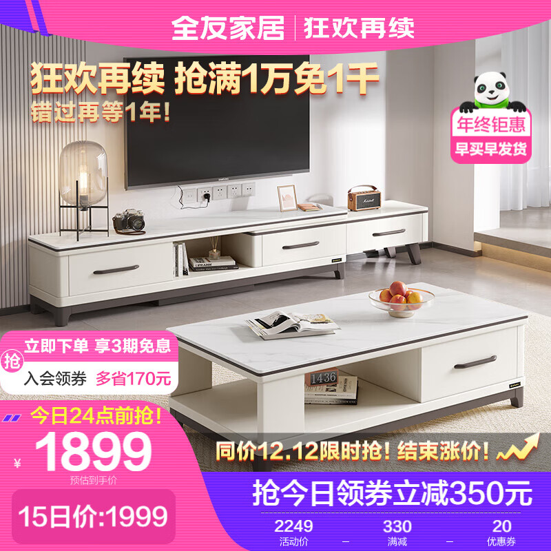 全友家居 茶几电视柜 简约北欧小户型客厅岩板台面茶几电视柜 120709C价格:2249.00元!