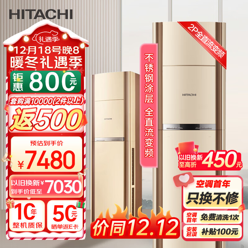 日立(HITACHI)白熊君 适用18-32㎡ 新3级能效 2匹 变频冷暖 立体式 空调柜机 以旧换新 RAP/C-L53KVYB价格:8280.00元!