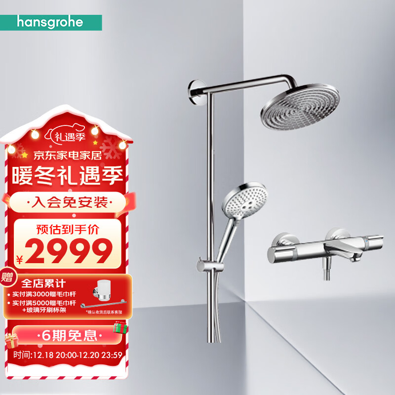 汉斯格雅(Hansgrohe)双飞雨240恒温带下出水分体式淋浴管圆顶喷花洒套装 分体式淋浴管价格:3699.00元!