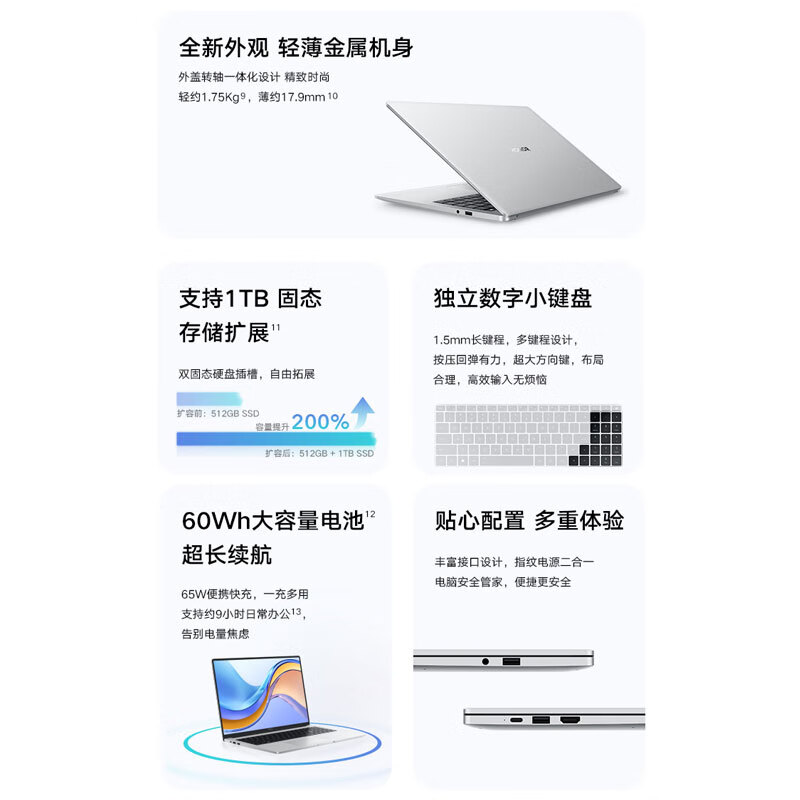 4、首先是颜值非常高,轻薄,携带方便。性能方面,搭载英特尔13代酷睿HX处理器,办公娱乐轻松搞定。荣耀,你值得拥有。