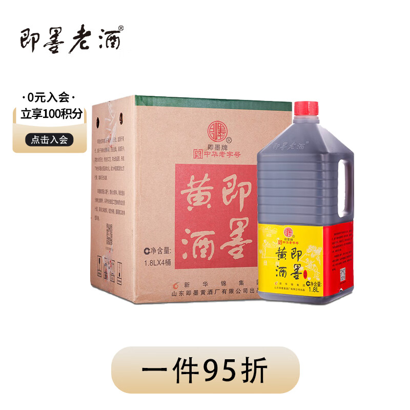 即墨老酒 众合 半甜型 北方黄酒 1.8L*4桶 整箱装价格:149.00元!