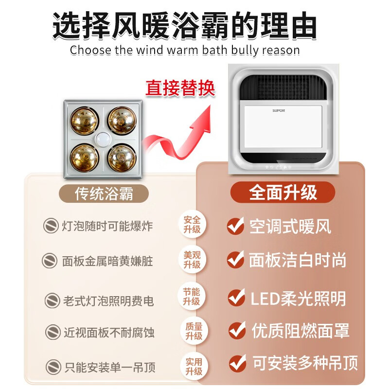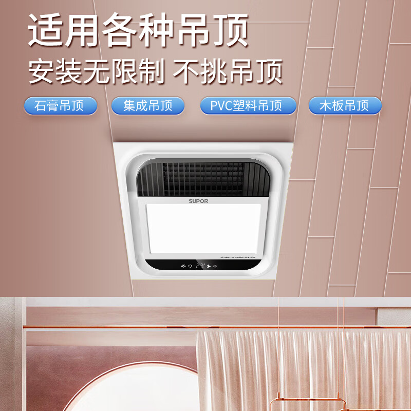 苏泊尔替代灯暖浴霸暖风照明一体集成吊顶卫生间灯暖风照明一体浴室暖风 【琴键开关】吊顶通用|高清数显价格:488.00元!