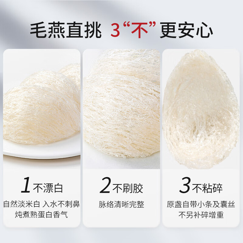 2、老婆怀孕了想吃燕窝,就把链接发我了,正好搞活动买一盒试试,包装很精美,直接冲泡也很方便,不用挑毛啥的,感觉品质很不错的,下次有需要回购