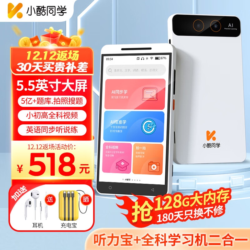 小酷同学M8口袋学习机5.5英寸复读机听力宝英语学习机单词记背神器英语听力随身听小学初中高中教材同步价格:518.00元!