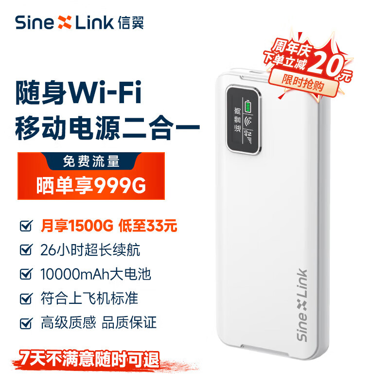 信翼随身wifi充电宝移动wifi 6无线免插卡上网卡便携式笔记本随行4G路由器车载宽带插电携带支持移动热点价格:119.00元!