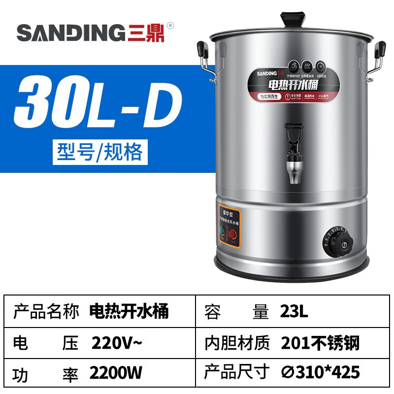 三鼎 烧水桶电热开水桶商用开水器烧水器奶茶咖啡节能保温桶饮水设备 30升/H 单层开水桶价格:229.00元!