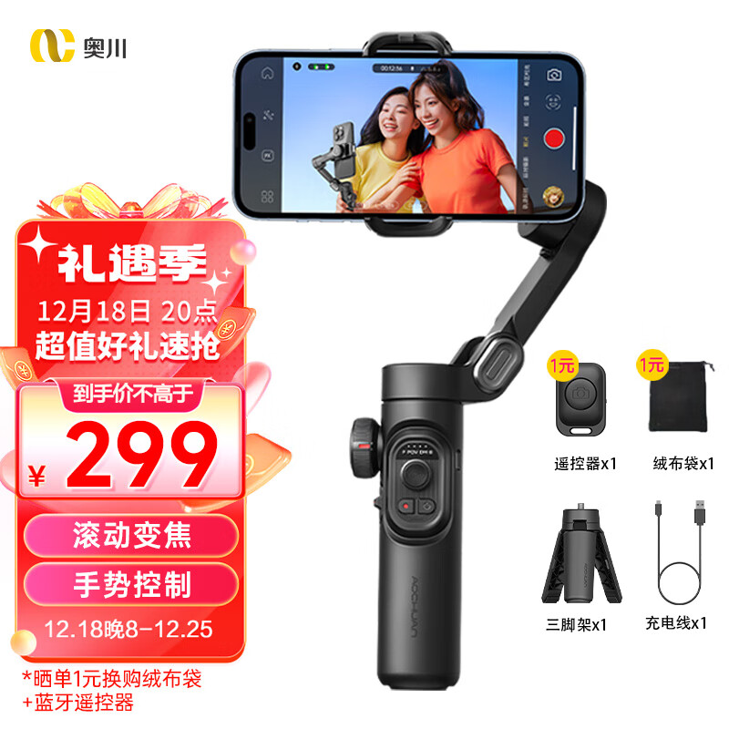 奥川 手机稳定器防抖小巧便携可折叠vlog神器智能手持云台直播 SMART XE标配 价格:299.00元!