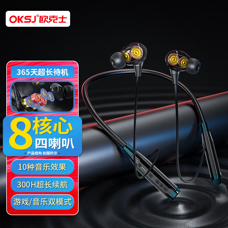 OKSJ 挂脖式蓝牙耳机运动跑步颈挂式无线超长续航 大电量双耳入耳式磁吸ENC通话降噪防水汗【四喇叭】价格:109.90元!