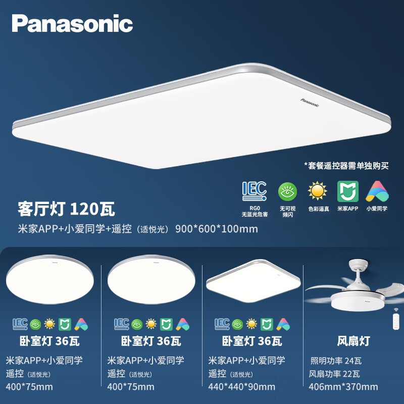 松下(Panasonic)三室二厅爱目护眼吸顶灯 LED客厅灯米家智能灯具价格:2699.00元!