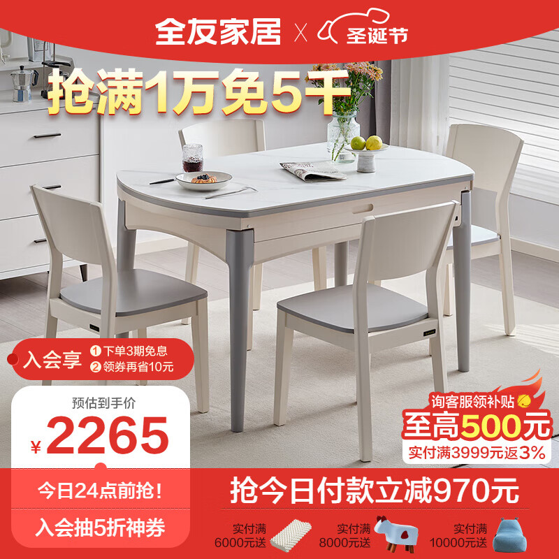 全友家居 餐桌椅 现代简约实木框架餐桌椅 可伸缩折叠岩板餐桌DW1028K价格:3235.00元!